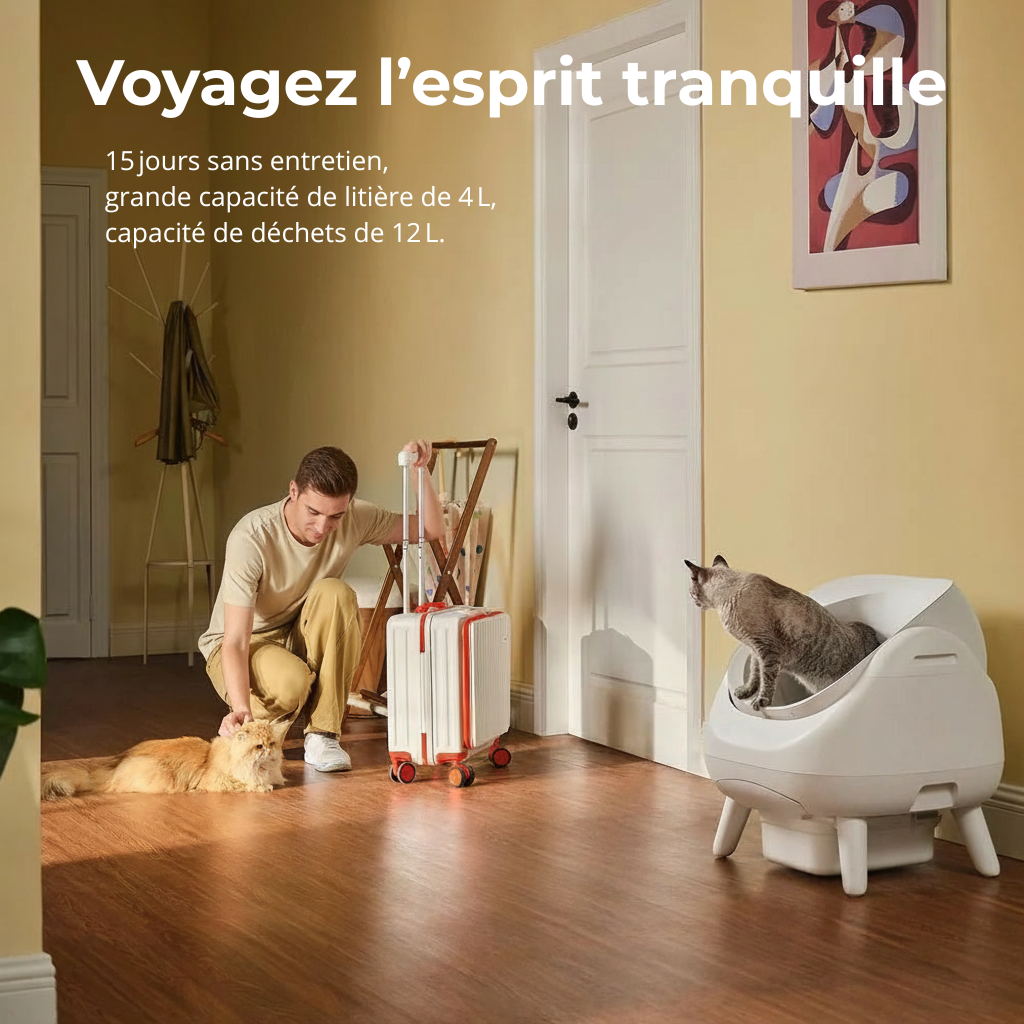 Entretien minimal : Grâce à son bac à l'étanchéité renforcée de 12 litres, profitez de 15 jours de tranquillité sans avoir à vider les déchets.